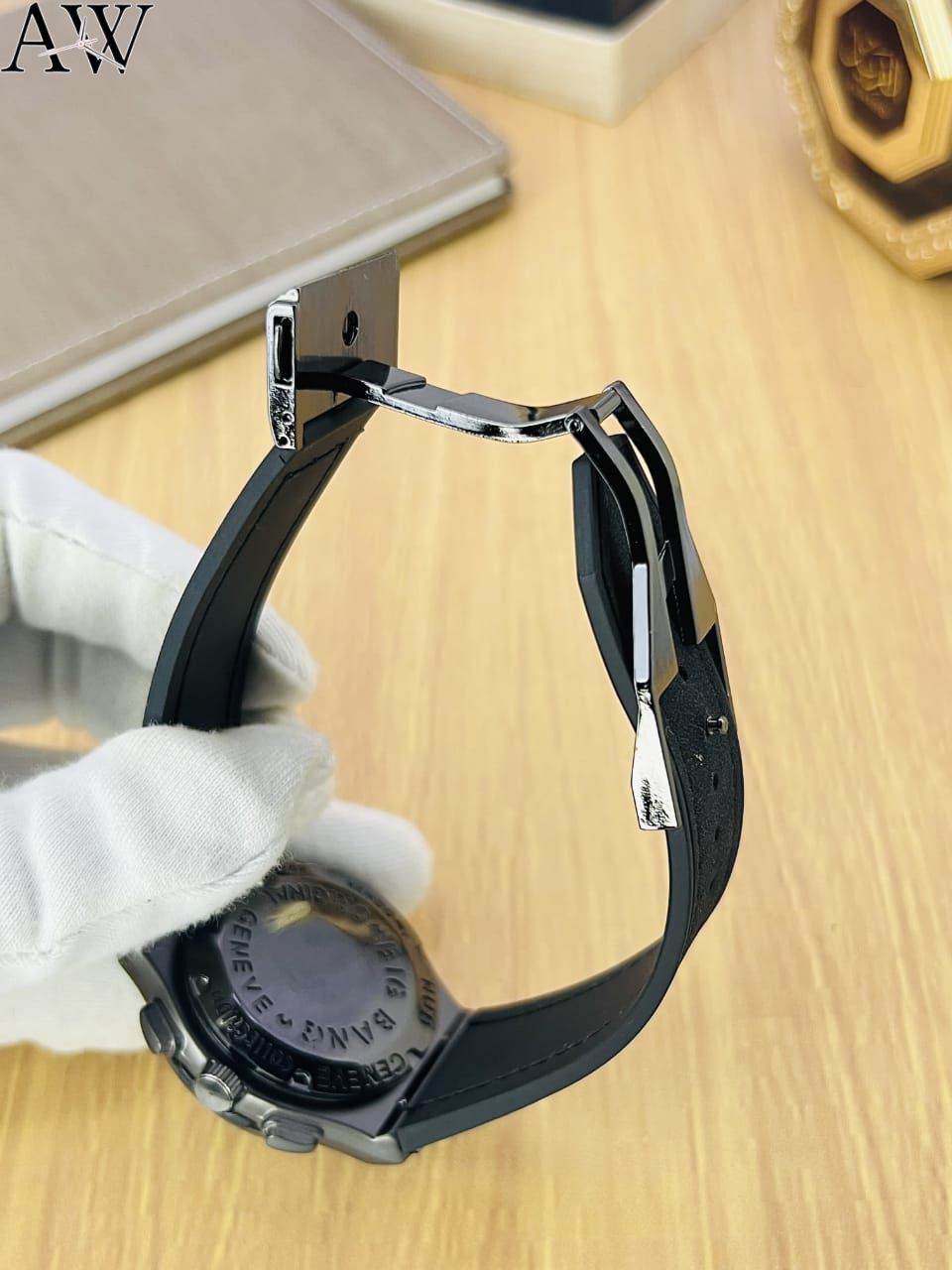 Inspired by the iconic Hublot Big Bang Unico Skeleton, this bold timepiece merges technical artistry with modern design. Its fully skeletonized dial showcases meticulously exposed gears and inner workings, while the robust screw-fixed bezel delivers a statement of industrial strength.